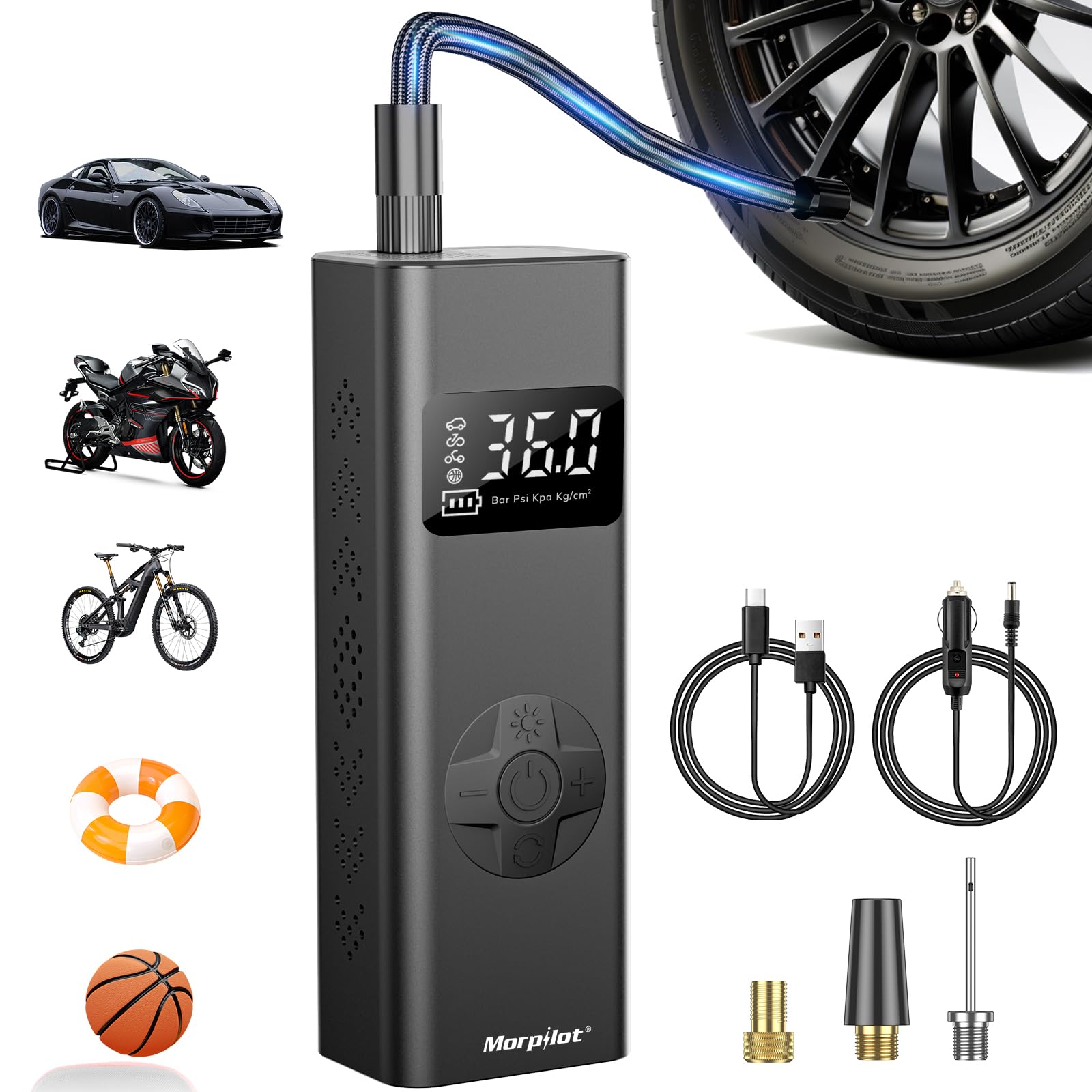 ![]() | Morpilot Elektrische Luftpumpe, 7800mAh Mini Tragbar Kompressor, Fahrradpumpe Elektrisch mit Digitalanzeige und Notbeleuchtung, Pumpe für Auto, Motorrad, Fahrräder, Bälle | 39.27 zł | B0CZ9DMYV4 | 0810142345330 |