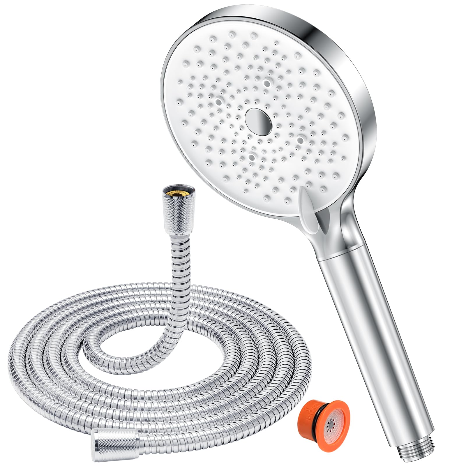 ![]() | YEAUPE Słuchawka prysznicowa z wężem 1,6 m, oszczędzająca wodę, głowica prysznicowa z filtrem, deszczownica z 6 rodzajami strumienia, duża (średnica: 130 mm), chrom/biała | 10.28 zł | B0CJ2NM8Z3 | 6974699211440 |